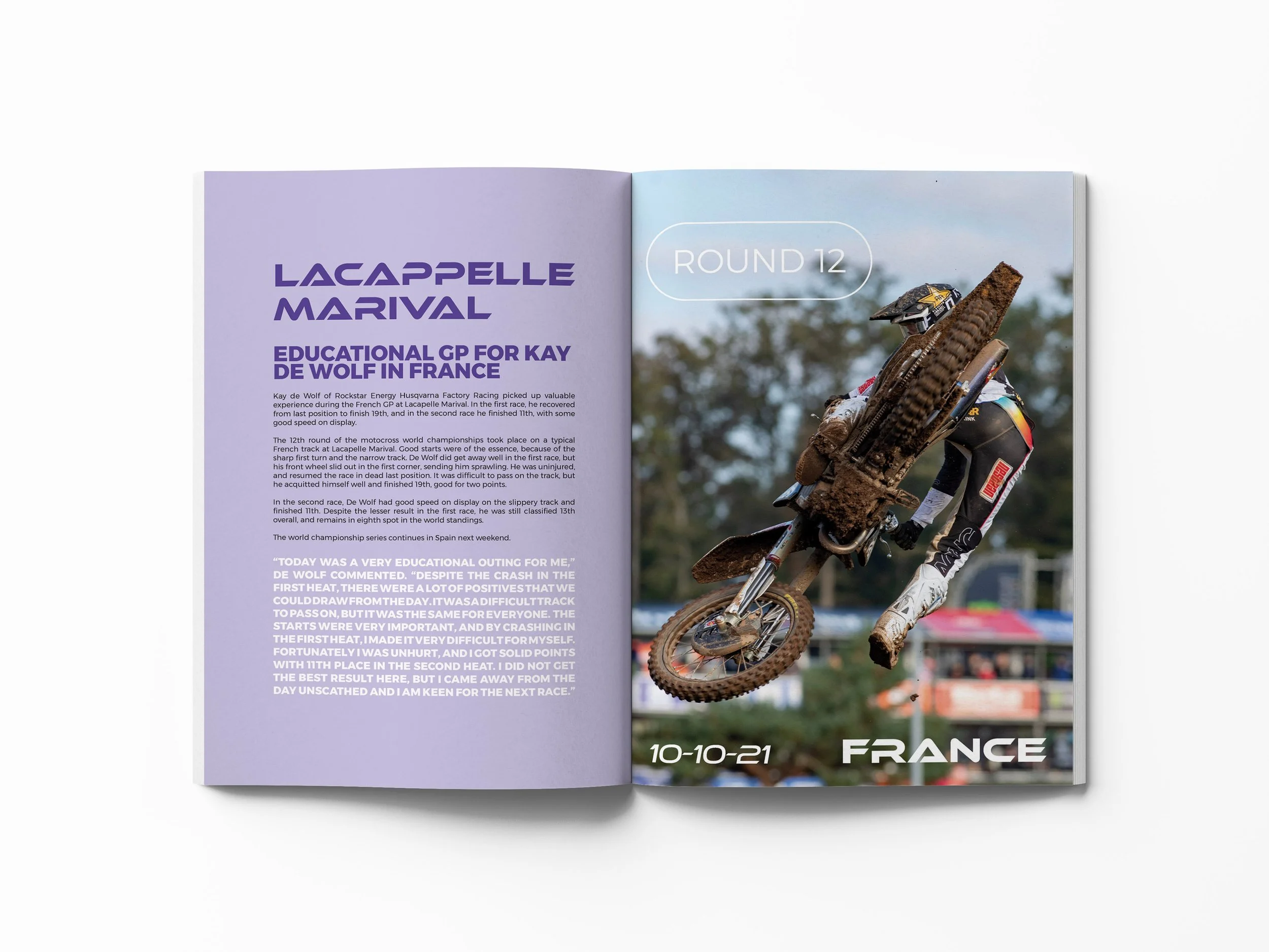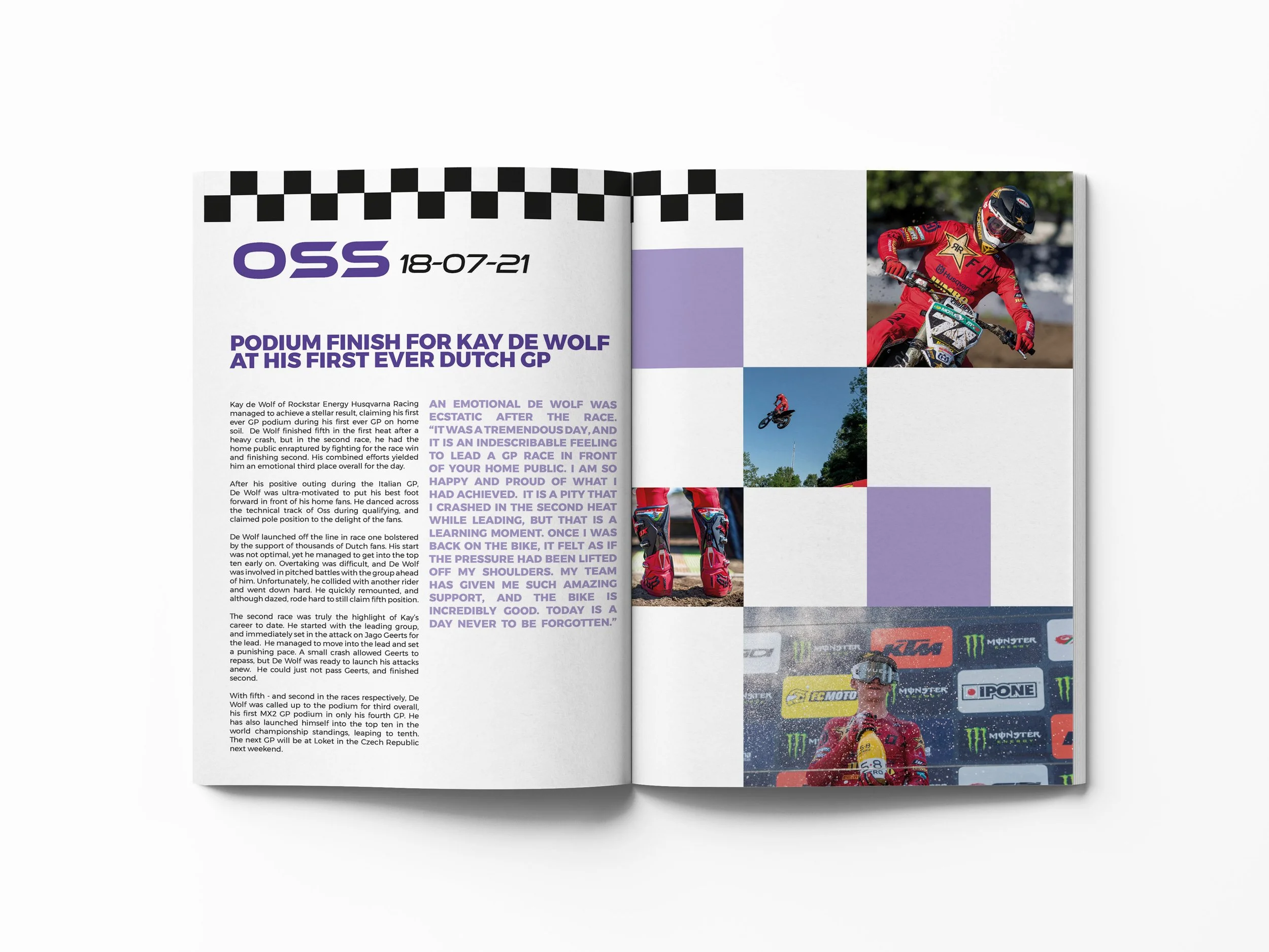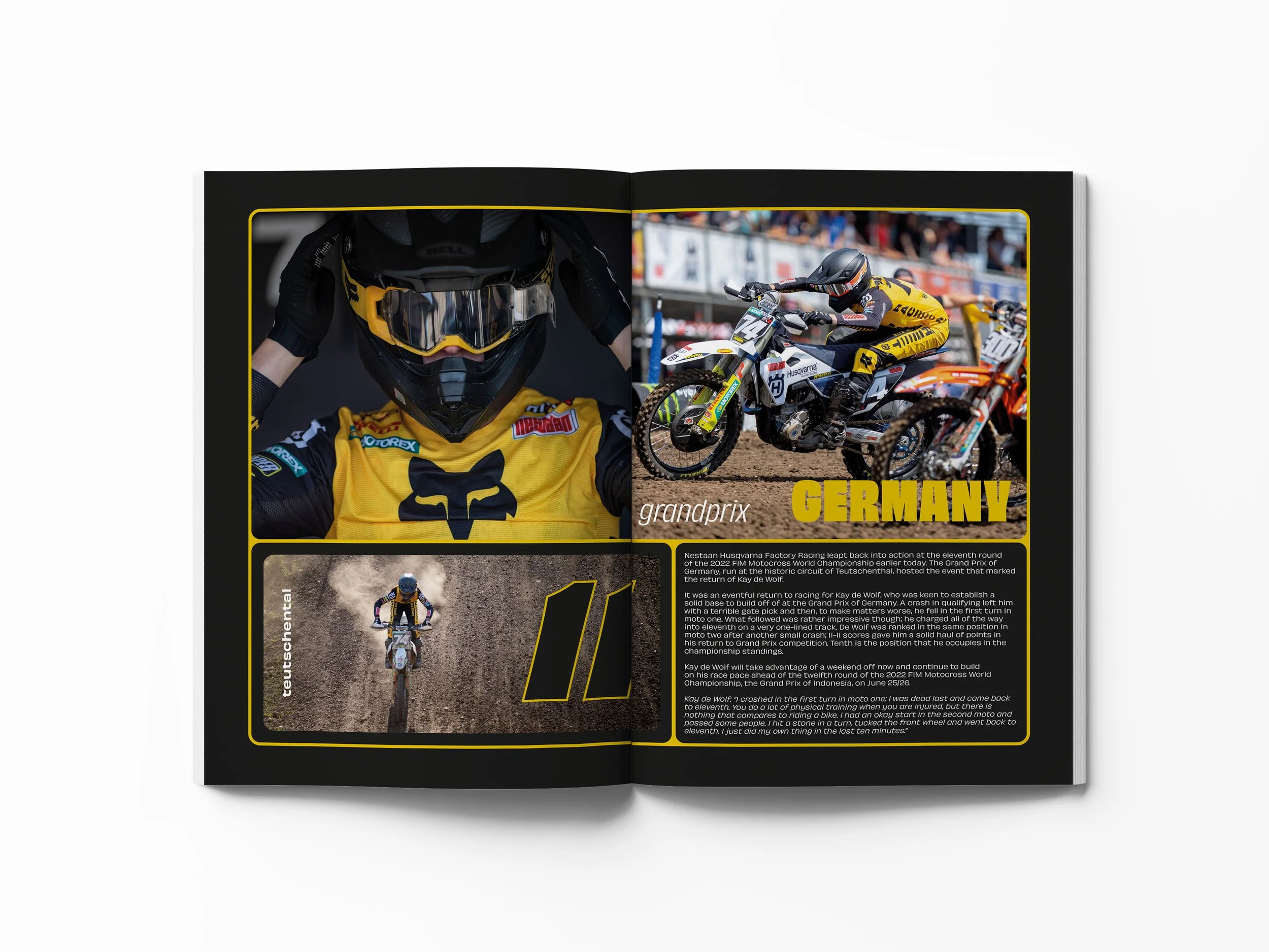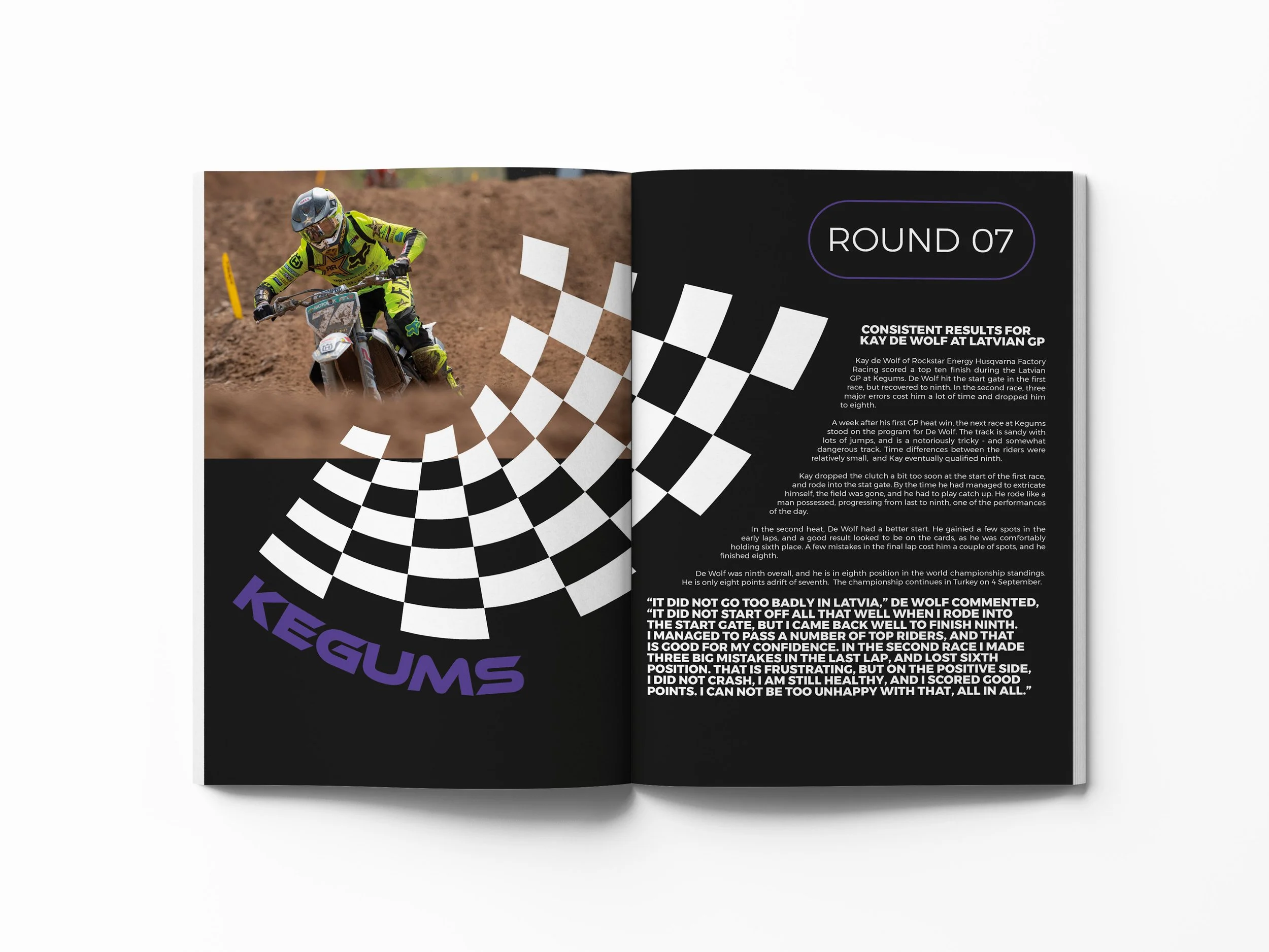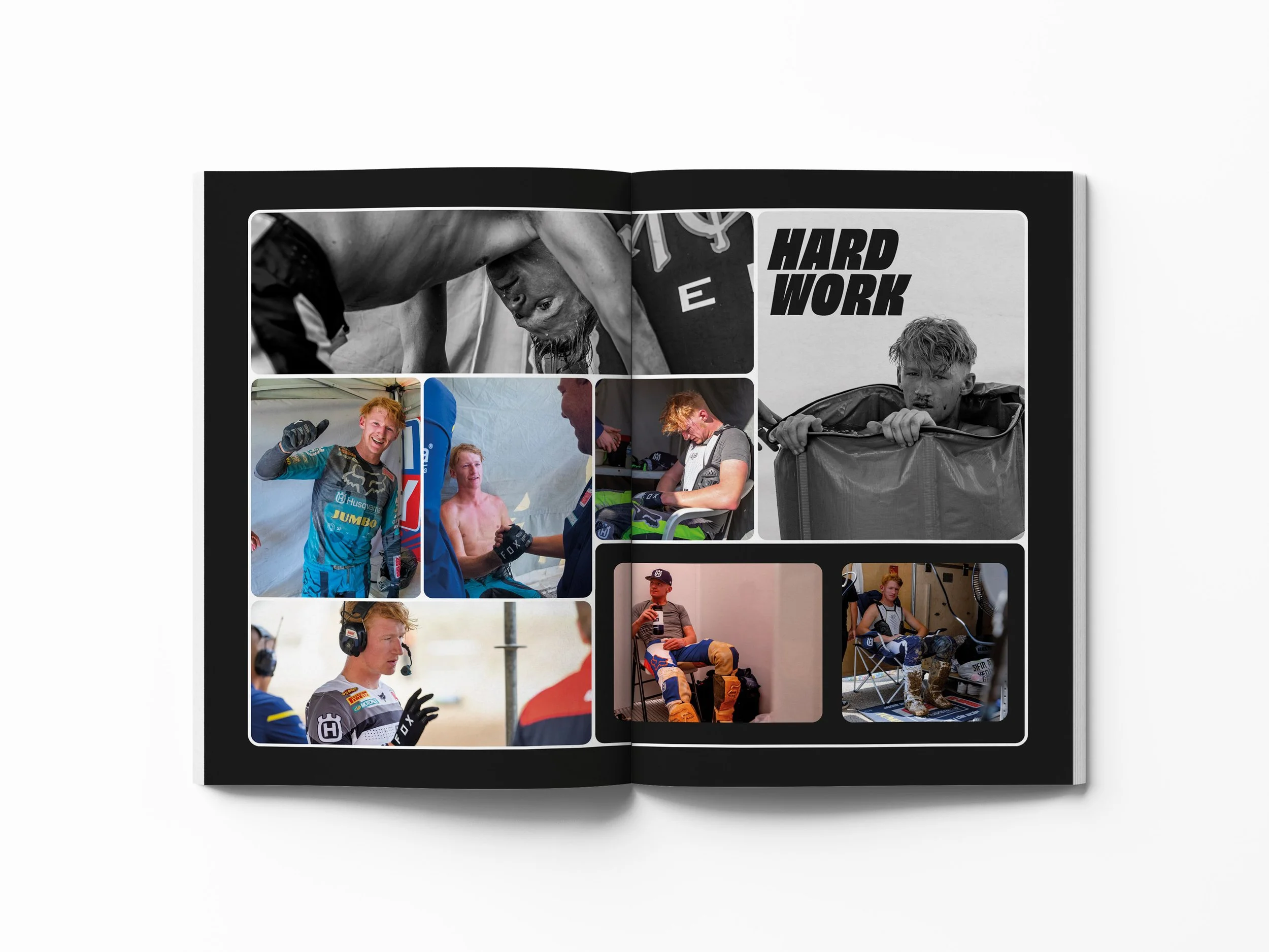 Every year I make a magazine for my cousin. He is a professional MX rider. The magazines represent the last season and are gifted to the sponsors of that year, future sponsors, friends, and family.
